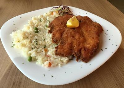 Pohana (naglašavam domaća) pileća prsa i rizi bizi.