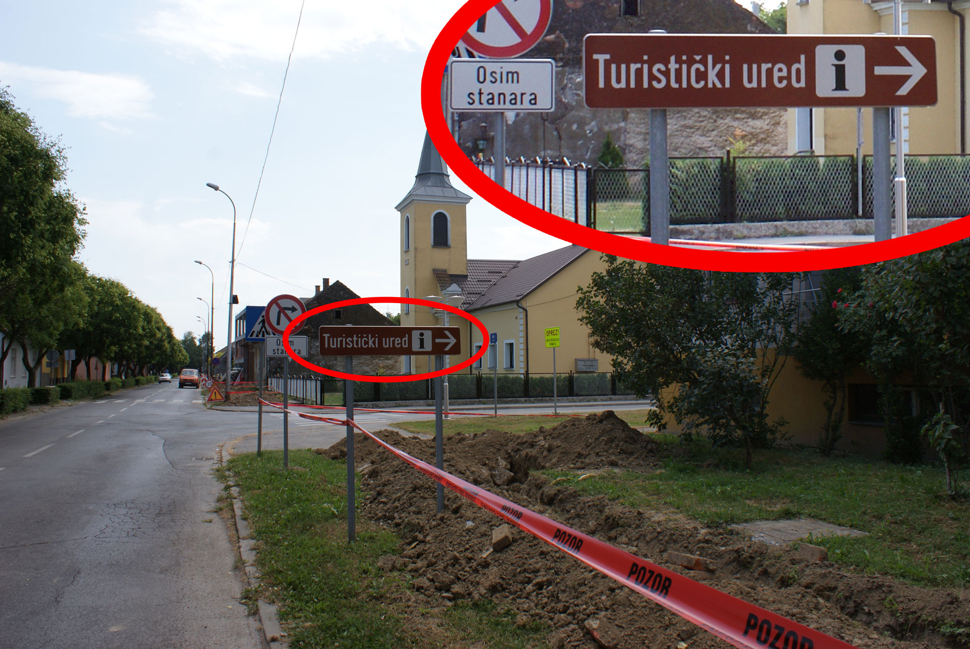 Problem s vertikalnom signalizacijom je i taj što je na skretanju u Tržnu ulicu iz Kolodvorske ulice ostavljen putokaz za Turistički ured, što sigurno u podsvijesti vozača ne izaziva reakciju kako bi nakon skretanja trebali na nešto obratiti pozornost.