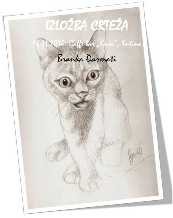 Mlada umjetnica Branka Đarmati ima izložbu crteža u caffe baru Kuća od danas i bit će postavljena oko mjesec i pol. Izložba sadrži realne motive, tehnika radova je olovka, tuš i kreda.