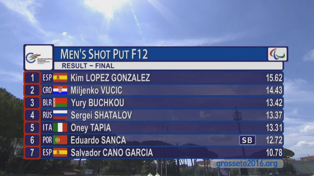 Atletičar Miljenko Vučić, evidentni kandidat za Paraolimpijske igre u Riju, jučer je u prijepodnevnim satima kuglu bacio na daljinu 14,43 m te time uspio zauzeti drugo mjesto u kategoriji slabovidnih bacača kugle. Prvo mjesto zauzeo je Španjolac Lopez Gonzalez sa prebačenih 15,62 m, do je treći bio Bjelorus Buchkou Yury sa 13,42 m.
