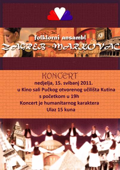 Pomoći nekome nekada nije jako teško, a Vi to upravo vrlo lako i jednostavno možete učiniti u nedjelju odlaskom na koncert. Možete uživati u odličnoj folklornoj izvedbi, kakvu nemamo baš prilike vidjeti u Kutini, a ujedno učiniti i humano djelo.