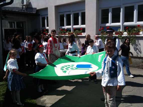 ostvarili zapažene rezultate na gradskim, županijskim i državnim natjecanjima. Na kraju programa učenici obučeni u nošnje Slavonije, Moslavine te češke i slovačke manjine podigli su eko zastavu.