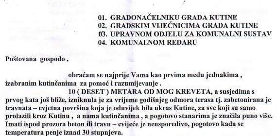 Krajem rujna, stanarka iz centra grada obratila se gradonačelniku, članovima gradskog vijeća, upravnom odjelu za komunalni sustav i komunalnom redaru za pomoć i razumijevanje.