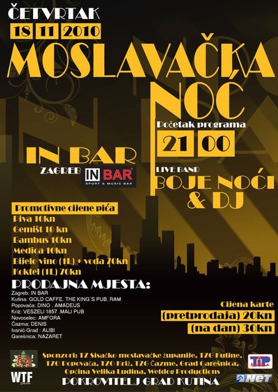 „Moslavačka noć“ biti će održana 18.11.2010. s početkom u 21.00h u „In Bar“, Jarunska 5 (izmedju Roka i Besta)!