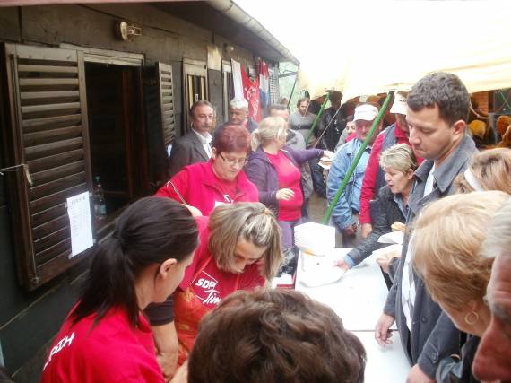 Nakon nastupa KUD-a Repušnica, pjevačkog zbora Udruge umirovljenika i Klape Škret KUD-a Moslavine, sve posjetitelje SDP Kutina počastio je besplatnim prvomajskim grahom.